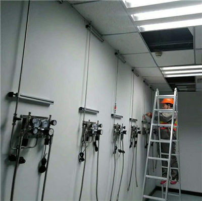 集中供氣系統采用二級減壓保證壓力的穩定氣體管道,采用二級減壓的方式,一是,經過減壓后,干路壓力比氣瓶壓力大大降低,起到了緩沖管道壓力的作用,提高了氣體管道用氣的安全,降低了應用的風險,二是保證儀器供氣入口壓力的穩定,降低了因為氣體管道壓力波動而引起的測量氣體管道誤差,保證了儀器使用的穩定性,嚴密性實驗:管內沖人高純氮氣使壓力到達0. 氣體管道 5MPa,保持此壓力如30min內壓力不降為合格;,對所有氣體管道無滲透性。。